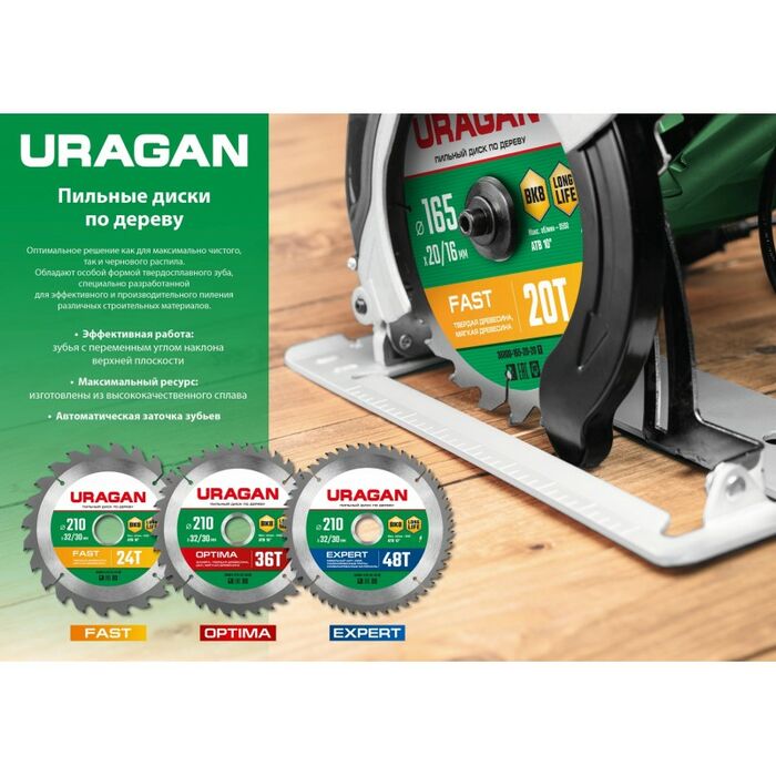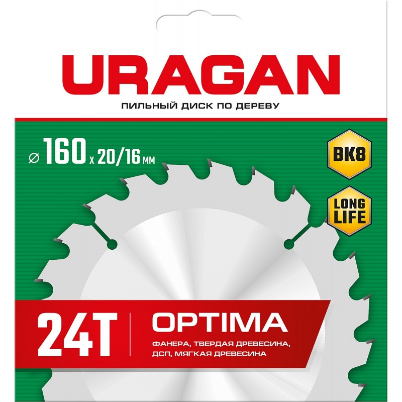 Описание URAGAN Optima 160 х 20/16 мм 24Т [36801-160-20-24_z01]