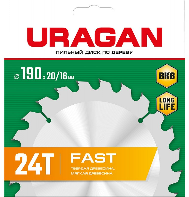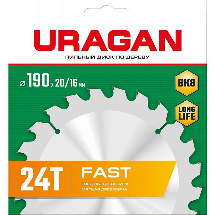 Описание URAGAN URAGAN Fast 190 х 20/16 мм 24Т [36800-190-20-24]