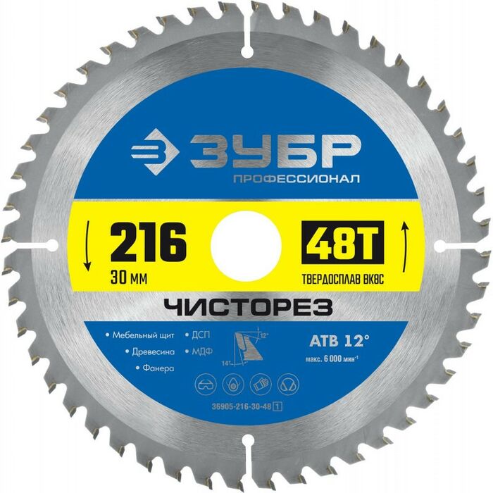 Диск пильный по дереву Зубр Чисторез 216 x 30мм 48Т [36905-216-30-48]