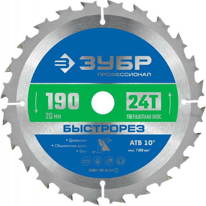 Описание Зубр Профессионал Быстрорез 190 x 20 мм 24Т [36901-190-20-24]