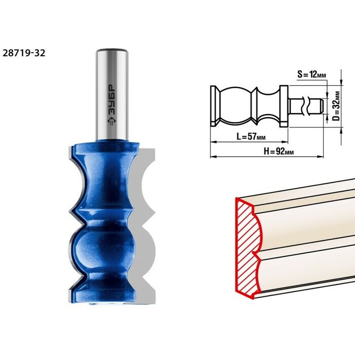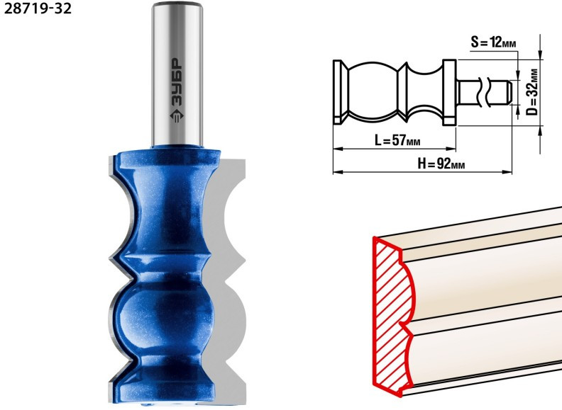 Возможно использование отдельных частей фрезы для получения декоративного профиля. Используется на фрезерных станках и ручных фрезерах при обработке мебели, столярных изделий, предметов интерьера, а также реставрационных работах. Рекомендуется для применениях на станках мощностью более 1,6 кВт
