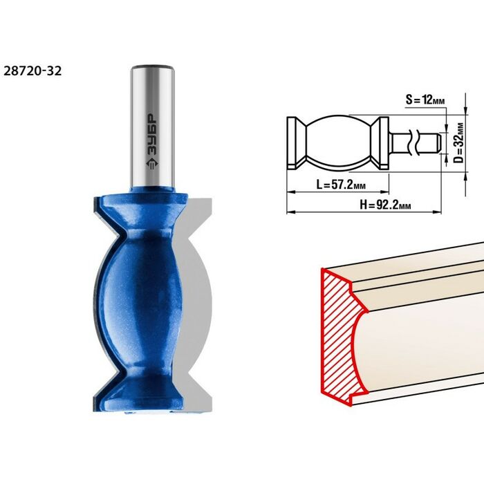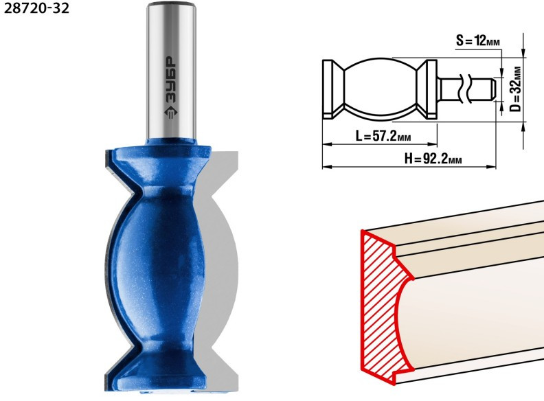 Возможно использование отдельных частей фрезы для получения декоративного профиля. Используется на фрезерных станках и ручных фрезерах при обработке мебели, столярных изделий, предметов интерьера, а также реставрационных работах. Рекомендуется для применениях на станках мощностью более 1,6 кВт