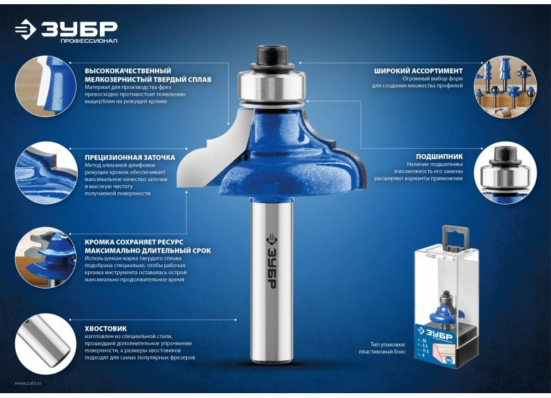 - Используется на фрезерных станках и ручных фрезерах при обработке мебели, столярных изделий, предметов интерьера, а также реставрационных работах и внутренней отделке.