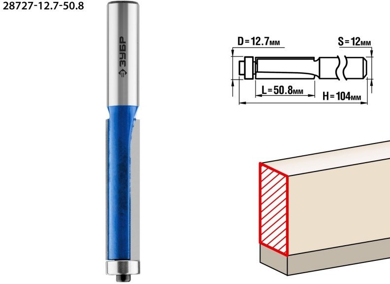 Фреза кромочная с нижним подшипником Зубр 12.7x50.8мм хвостовик 12мм [28727-12.7-50.8]