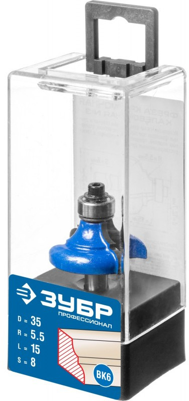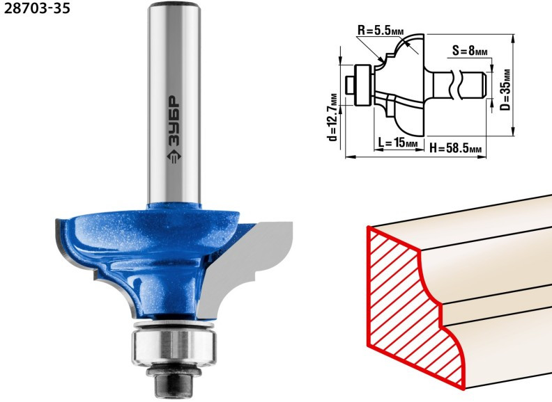 Кромочная калевочная фреза Зубр Профессионал №3 35x17 мм радиус 5.5 мм [28703-35]