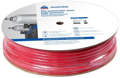 Шланг пневматический поливинилхлоридный МАСТАК 684-08100 (ПВХ) предназначен для подведения сжатого воздуха к пневматическому инструменту, подключения пневматического оборудования, а также для проведения воздушных магистралей к рабочему месту.