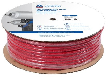 Шланг пневматический поливинилхлоридный (ПВХ) МАСТАК 684-10100 предназначен для подведения сжатого воздуха к пневматическому инструменту, подключения пневматического оборудования, а также для проведения воздушных магистралей к рабочему месту.