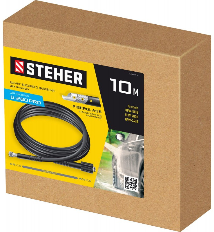 - Длина 10 м позволяет не прерывать работу для перемещения мойки