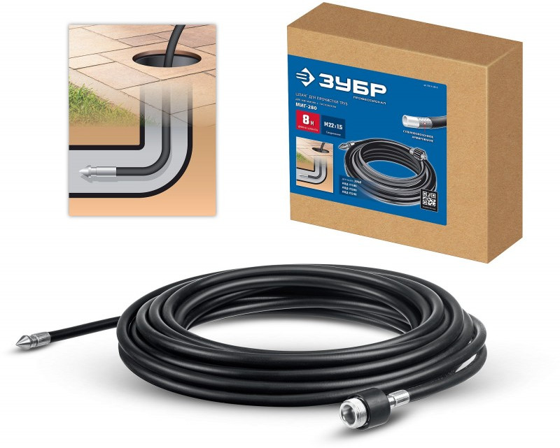 Качественные комплектующие для расширения функциональности моек ЗУБР Преимущества Эффективная прочистка засорившихся канализационных и водопроводных...