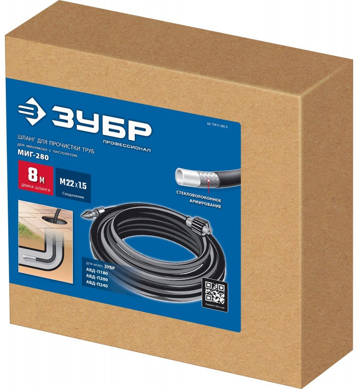 Шланг для прочистки труб Зубр 8 м для пистолета МИГ-280 [70414-280-8]