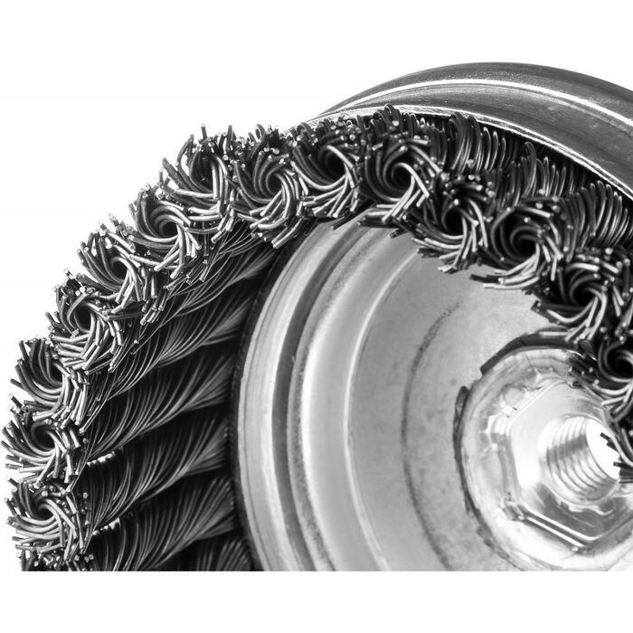 - Повышенный ресурс щетки благодаря еще более высокой жесткости сплетенного пучка и увеличенной толщине проволоки