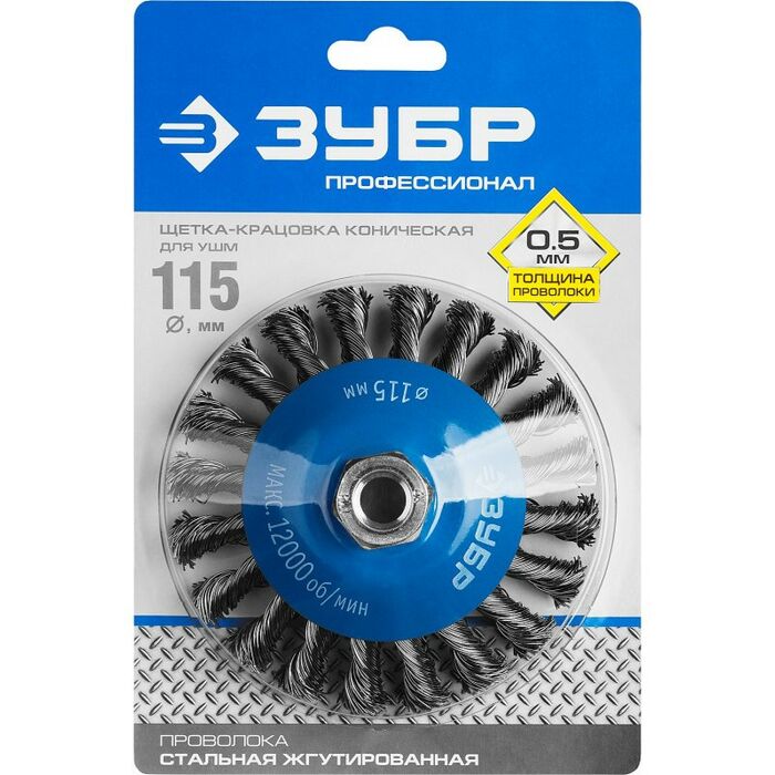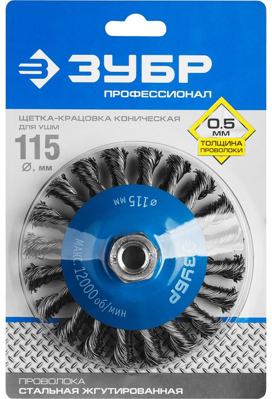 Щетка коническая Зубр Профессионал 115 мм стальная проволока, 0.5 мм [35269-115]