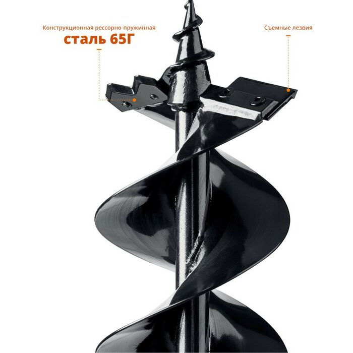 - Шнек для мерзлого грунта используется совместно с мотобурами ЗУБР. Представляет собой инструмент винтовой конструкции с двумя режущими элементами, выполненным из высокопрочной стали. При помощи шнека можно бурить в мерзлом грунте скважины диаметром 150 мм.