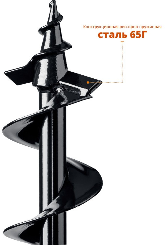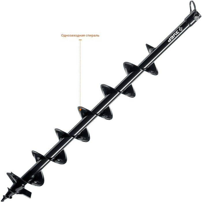 Шнек является сменным элементом для мотобуров ЗУБР. Он представляет собой винтообразный бур, который широко применяют для бурения скважин бытового назначения. Например, с его помощью можно бурить скважины для установки столбов. Благодаря винтовой форме шнек быстро проникает сквозь грунт и выбрасывает его наверх.