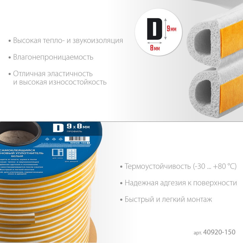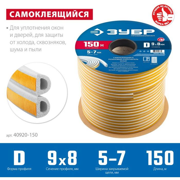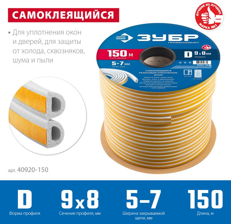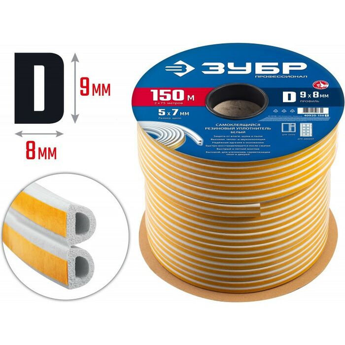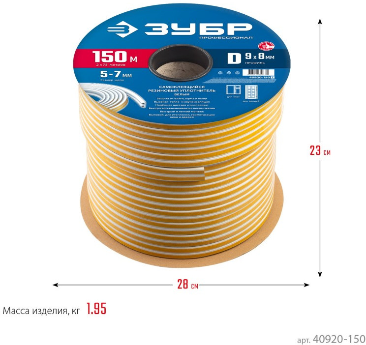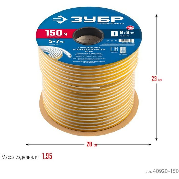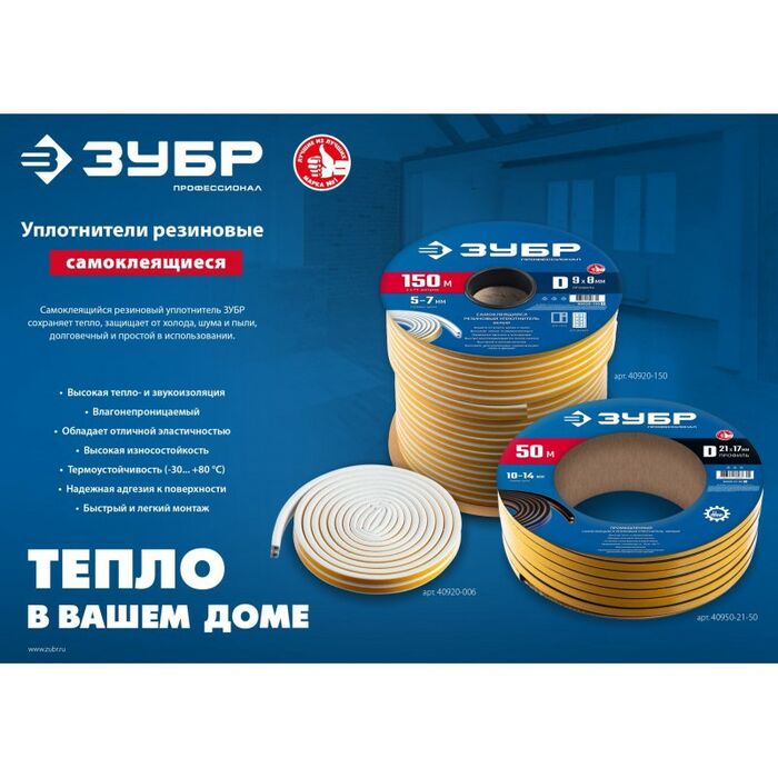 Уплотнитель ЗУБР предназначен для уплотнения окон и дверей. Помогает сохранить в доме тепло зимой и прохладу летом, оберегает от холода, сквозняков, шума и пыли.