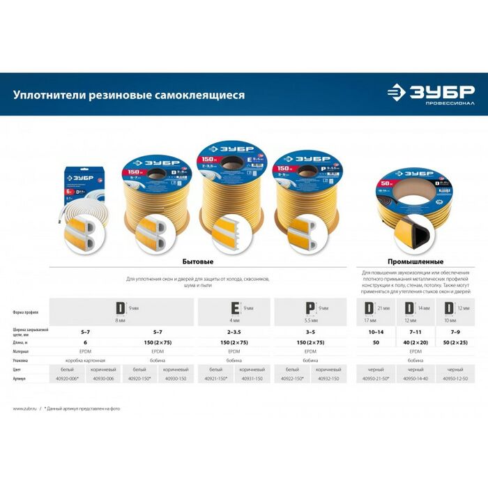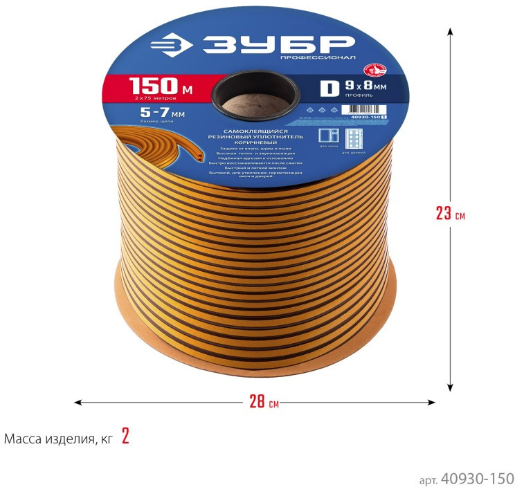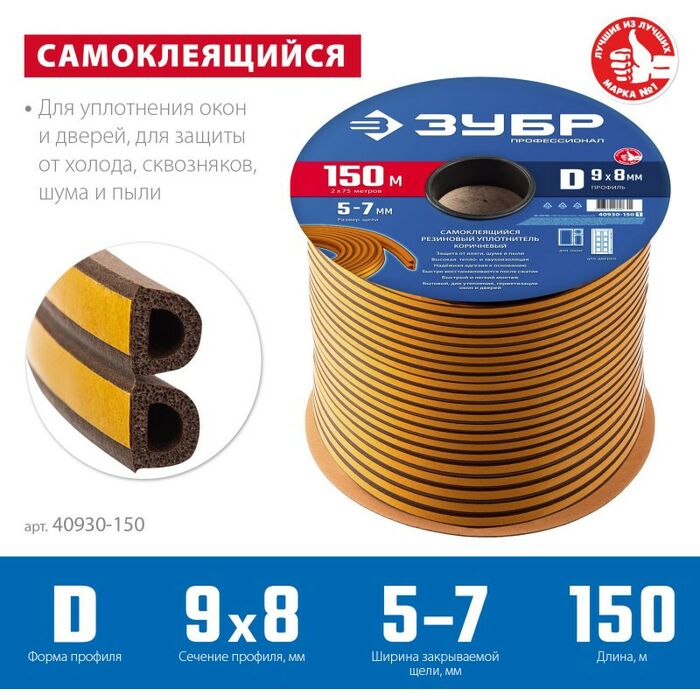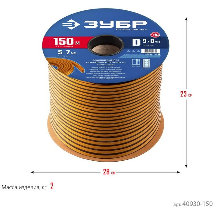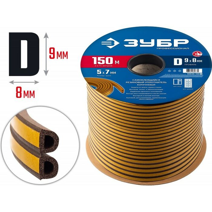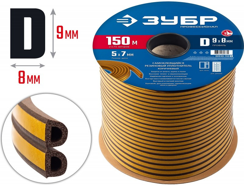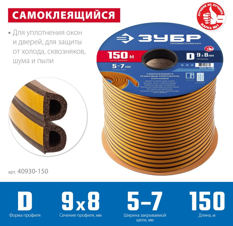 Уплотнитель ЗУБР предназначен для уплотнения окон и дверей. Помогает сохранить в доме тепло зимой и прохладу летом, оберегает от холода, сквозняков, шума и пыли.