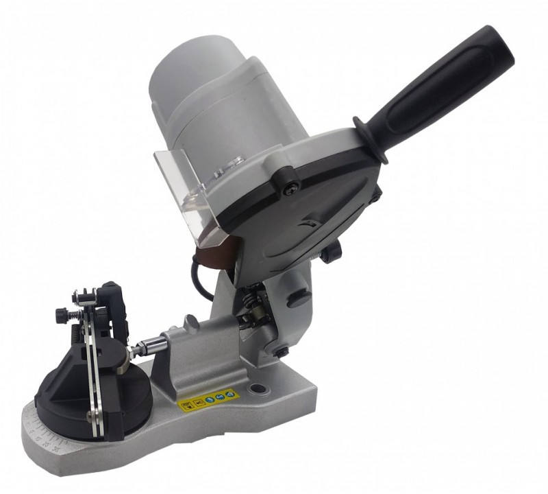 - С помощью станка можно гораздо легче и быстрее восстановить рабочее состояние цепи и соблюсти требуемые углы заточки рабочих поверхностей пильных элементов конструкции