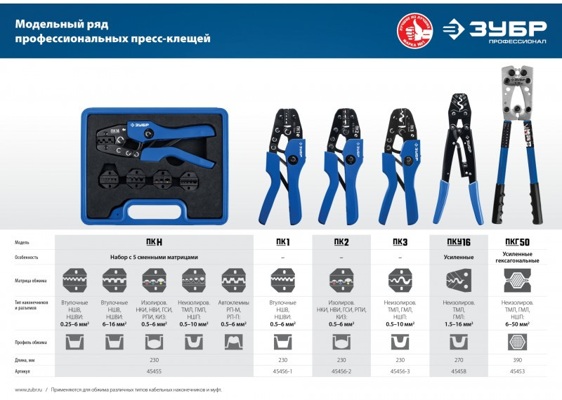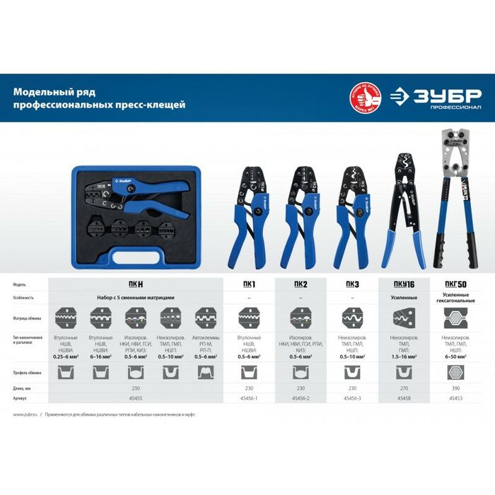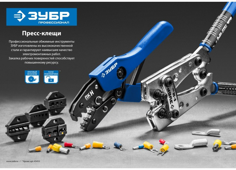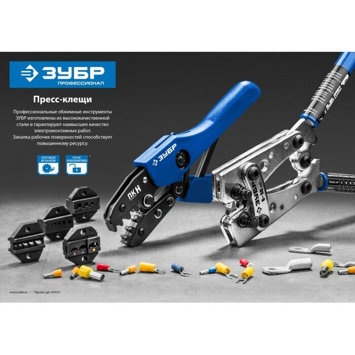 Набор пресс-клещи ЗУБР с 5 сменными матрицами изготовлен из высококачественной стали, предназначен для профессионального применения. Обладает повышенным...