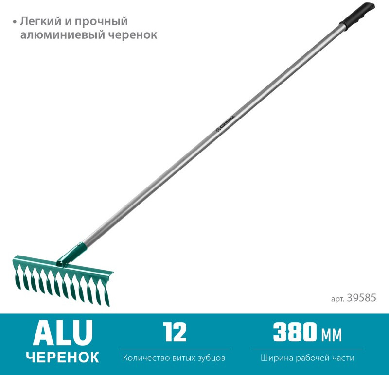 Садовые грабли Grinda с алюминиевым черенком максимально лёгкие и удобные