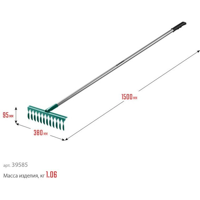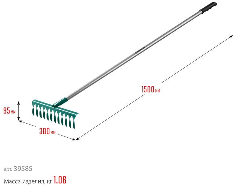 - Лёгкий и прочный алюминиевый черенок позволяет затрачивать значительно меньше усилий во время работы и увеличивает срок службы изделия