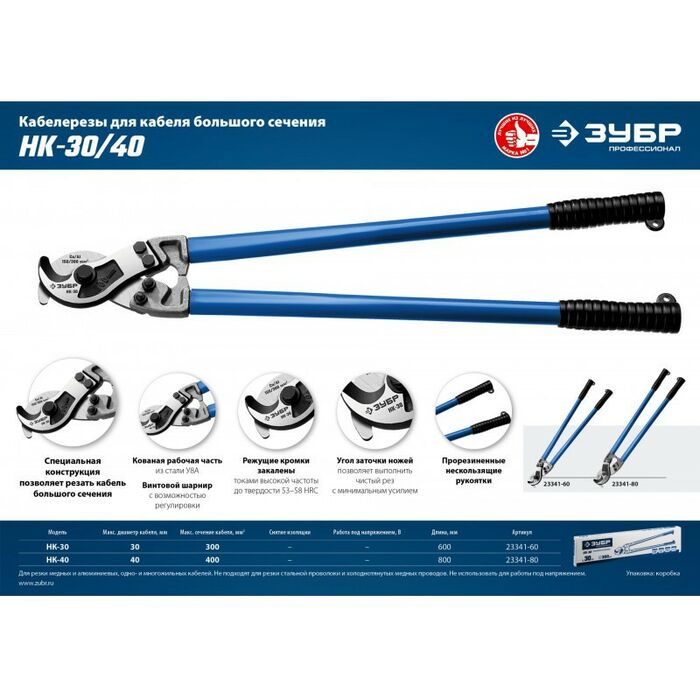 Кабелерезы ЗУБР изготовлены из высококачественной стали, предназначены для профессионального применения. Обладает повышенным ресурсом, обеспечивает высокое качество электромонтажных работ.