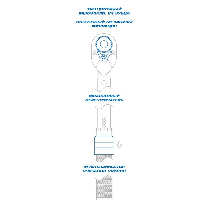 • Механизм фиксации установленного значения срабатывания ключа исключает случайный проворот рукоятки;