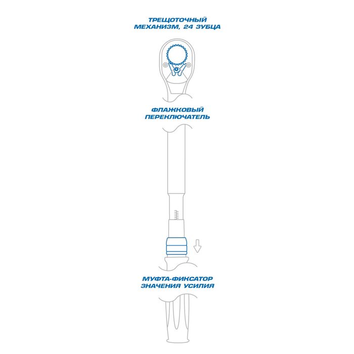 • Механизм фиксации установленного значения срабатывания ключа исключает случайный проворот рукоятки