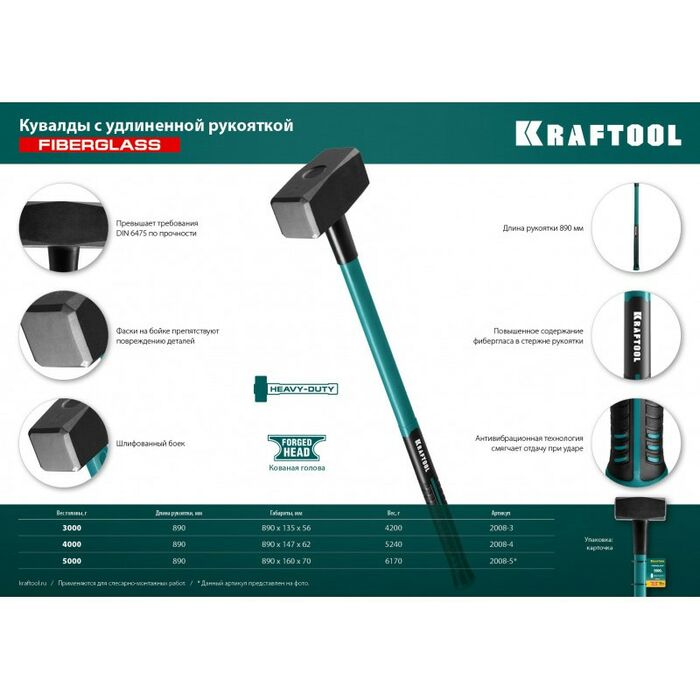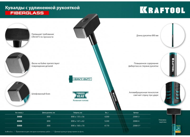- Конструкция крепления головы к рукоятке: Сверхпрочное