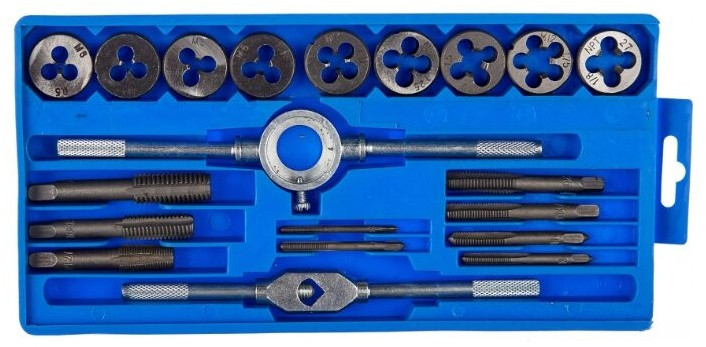 - Метчики (М3х0,5; М4х0,7; М5х0,8; М6х1,0; М7х1,0; М8х1,25; М10х1,5; М12х1,75; 1/8NPT) - 9 шт;
