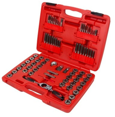 Набор метчиков и плашек, состоящий из 75 предметов.