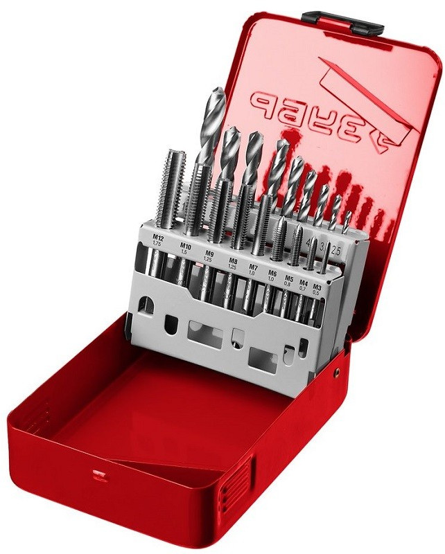- Метчики метрические (9шт): 3х0,5 4х0,7 5х0,8 6х1,0 7х1,0 8х1,25 9х1,25 10х1,5 12х1,75