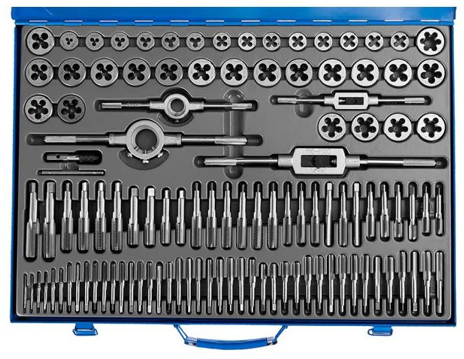 - Наборы с металорежущим инструментом оптимально скомпонованы для решения большинства задач по нарезанию резьбы. Высокое качество инструментов, входящих в набор, позволяет получить максимально качественный результат даже в самых трудных условиях