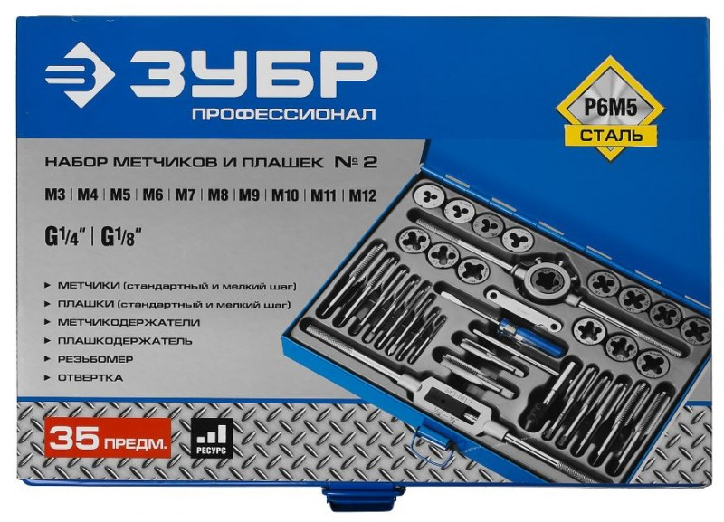 - Использование передовых технологий производства, широкий ассортимент метчиков, плашек, оснастки и оптимально скомпонованных наборов делают инструмент ЗУБР незаменимым при выполнении любых задач по нарезанию резьбы и гарантируют его высочайшее качество