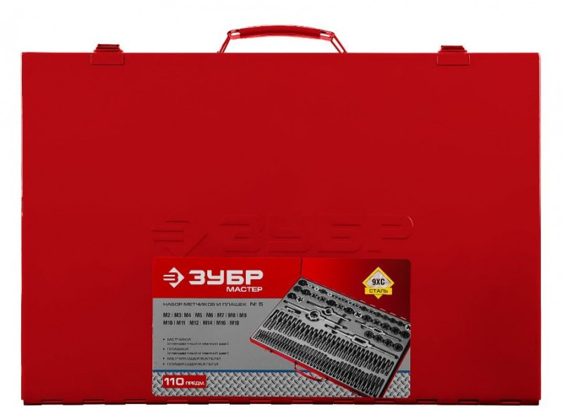 - Использование передовых технологий производства, широкий ассортимент метчиков, плашек, оснастки и оптимально скомпонованных наборов делают инструмент ЗУБР незаменимым при выполнении любых задач по нарезанию резьбы и гарантируют его высочайшее качество