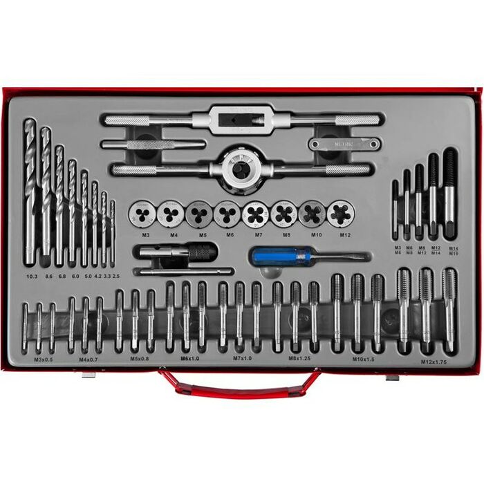 - Комплекты метчиков для нарезания метрической резьбы 8 шт: 3х0.5, 4х0.7, 5х0.8, 6х1.0, 7х1.0, 8х1.25, 10х1.5, 12х1.75