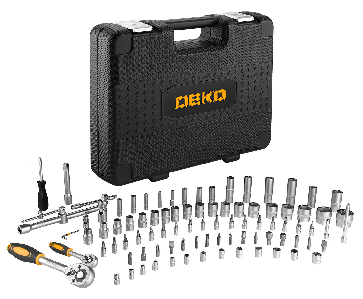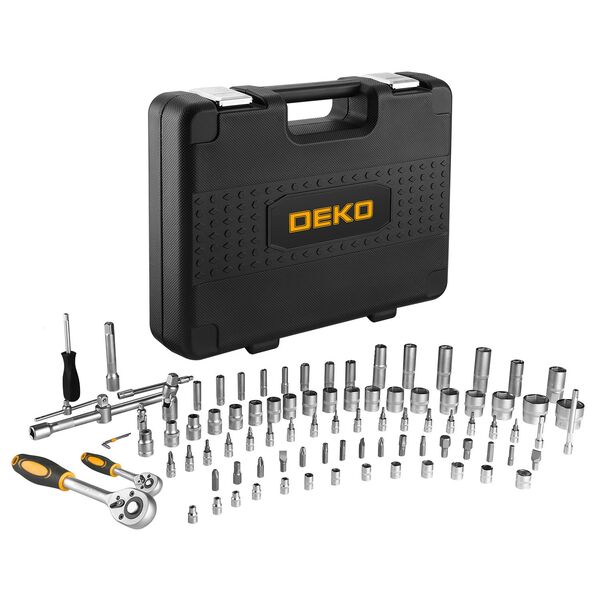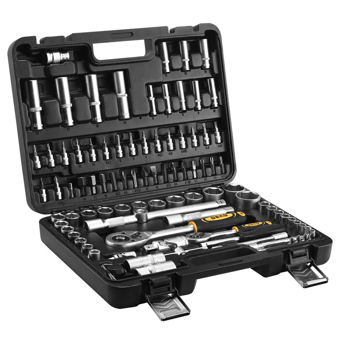| Дополнительно в наборе, 1 / 2"DR | Шарнир карданныйПереходник для головок торцевыхУдлинитель торцевых головок 5", 10"Переходник для бит Х8 мм |