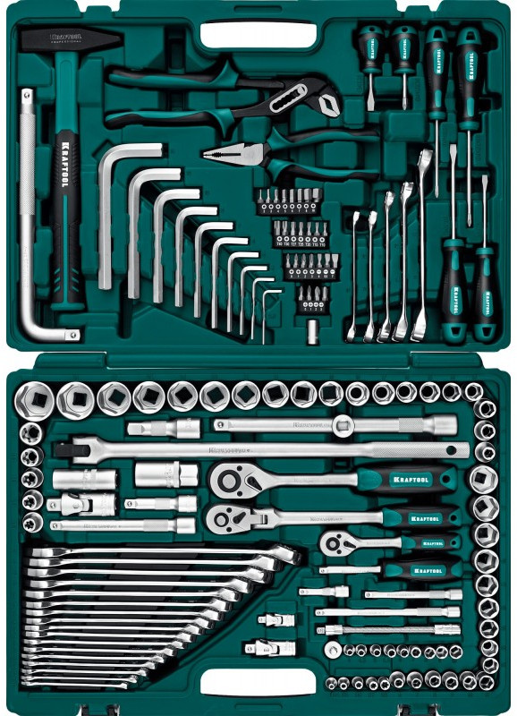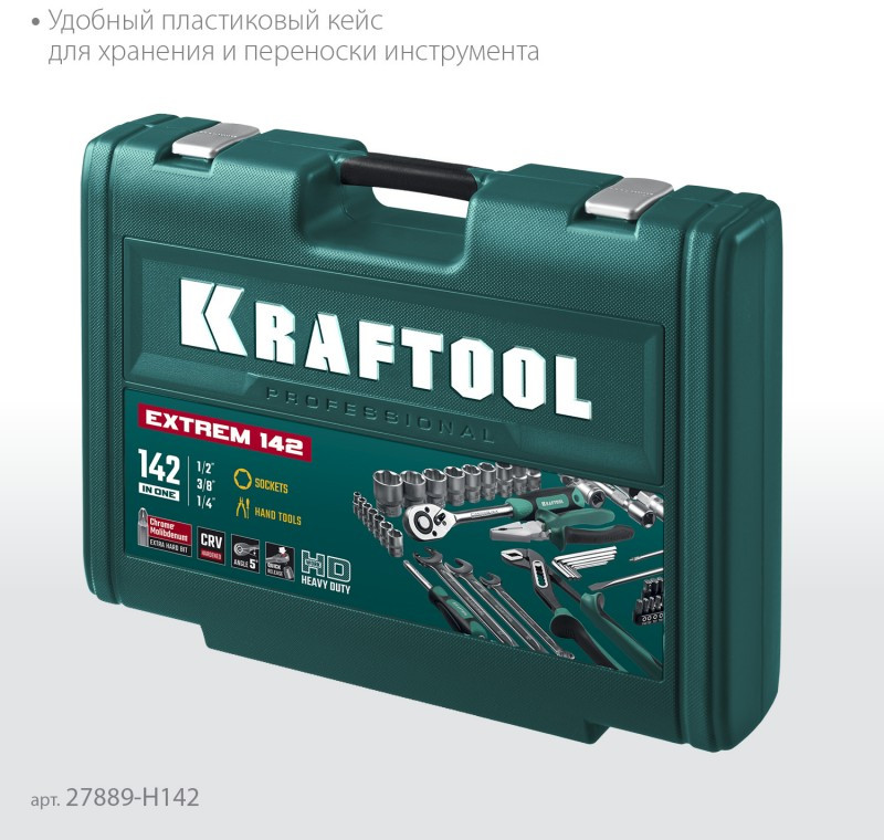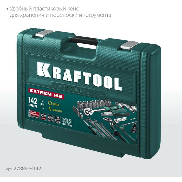 Универсальный набор инструмента KRAFTOOL EXTREM-142 142 предмета, 1/2"+3/8"+1/4" [27889-H142]