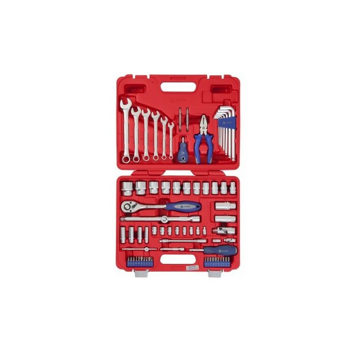 Хромированное покрытие защищает инструменты от коррозии, специальная насечка на ободке головок, рукоятках воротков и других силовых инструментов исключает проскальзывание руки при работе, рукоятки отвёрток и шарнирно-губцевого инструмента выполнены из двухкомпонентного бензо- и маслостойкого материала.