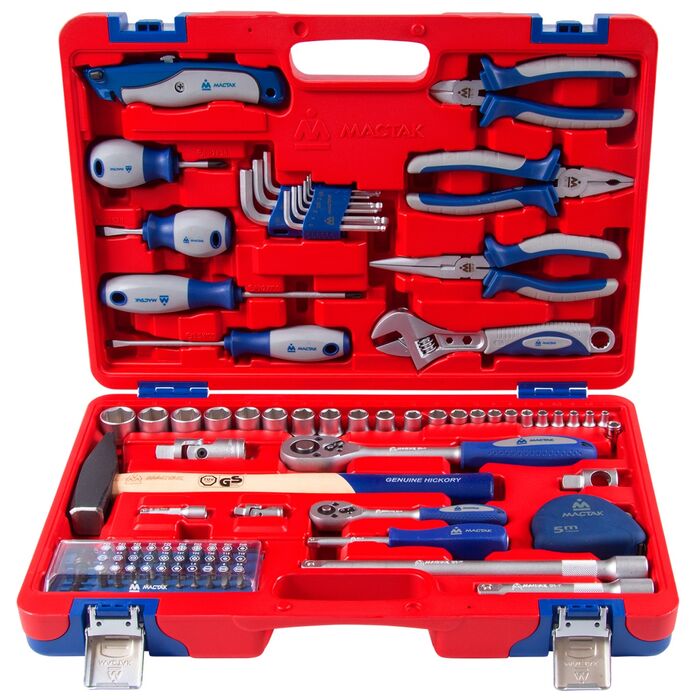 Набор подойдёт в качестве надёжного помощника для любого автомобиля в дороге, для работы в гараже, а также в любой мастерской или станции ТО.