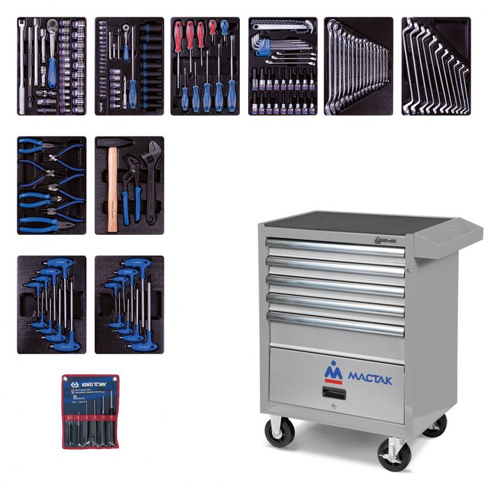 Инструменты марки KING TONY изготовлены из инструментальной легированной хром-ванадиевой стали специального сплава. Технология изготовления ключей и головок включает в себя метод горячей ковки с последующей термообработкой, придающим инструментам особую прочность и высокую надёжность, что даёт возможность профессионального использования набора в условиях авто-сервисной мастерской, станции технического обслуживания, а также на производстве.