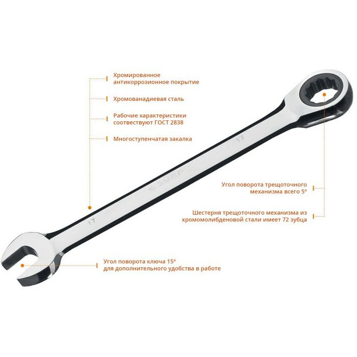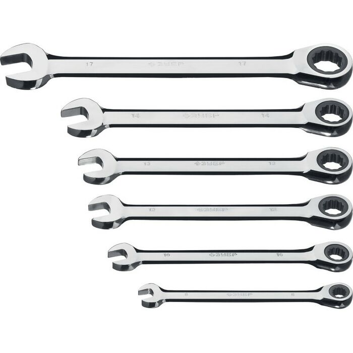 Набор комбинированных гаечных ключей трещоточных Зубр 27074-H6 6 шт, 8 - 17 мм