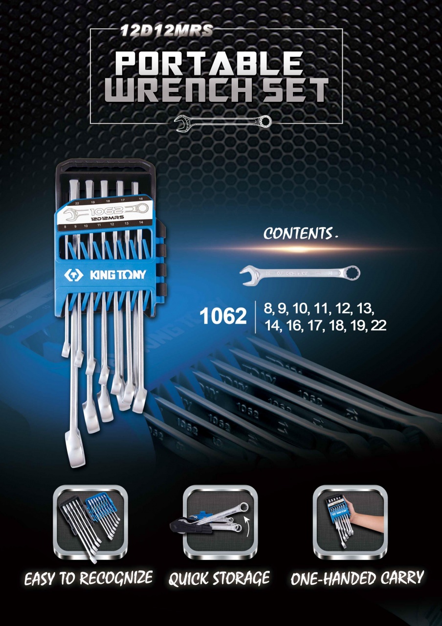 | Ключ комбинированный | 1062 | 8, 9, 10, 11, 12, 13, 14, 16, 17, 18, 19, 22 мм |