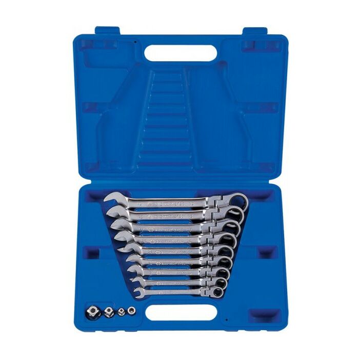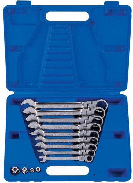 Набор комбинированных трещоточных ключей, состоящий из 13 предметов.