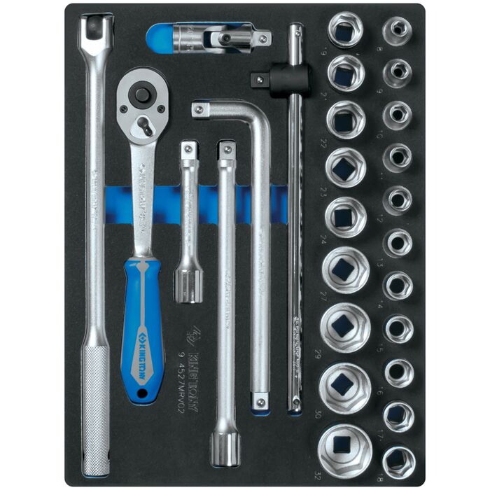 Размер ложемента адаптирован для размещения на полке инструментальной тележки.Материал ложемента – EVA– лёгкий, прочный, эластичный и упругий материал, обладающий хорошими амортизирующими свойствами, устойчивый к маслам и растворителям, при деформации возвращает прежнюю форму. EVA (ЭВА, полимер на основе этилена и винилацетата) – материал, не имеющий равных по своим характеристикам и удовлетворяющий условиям интенсивной эксплуатации в условиях ежедневной работы.