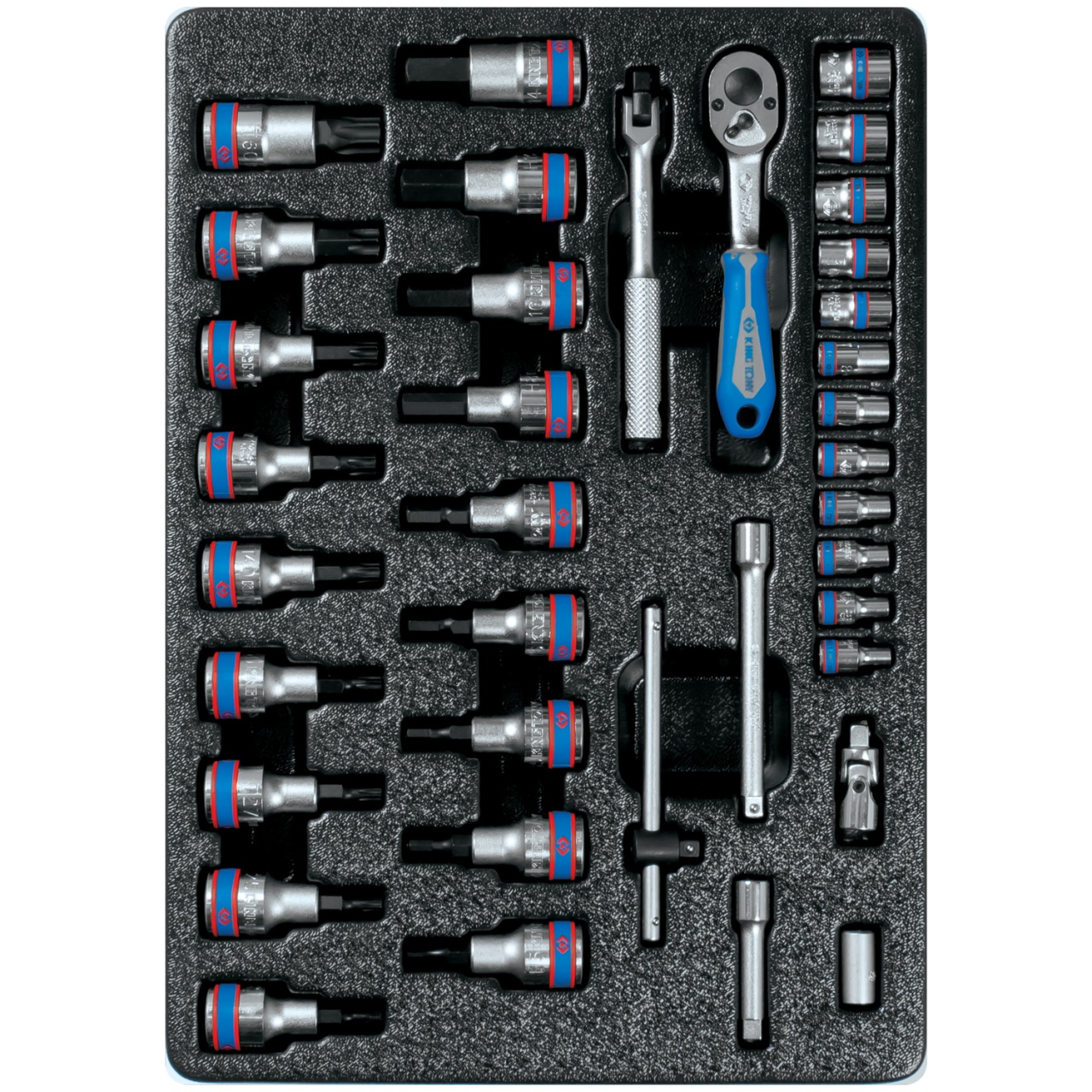 | Набор с инструментом торговой марки KING TONY включает в себя торцевые головки и принадлежности, предназначен для монтажа и демонтажа крепёжных узлов различных изделий, устройств и агрегатов. Материал ложемента – ПВХ (поливинилхлорид). Изготовлен специально для комплектации инструментальной тележки. • Состав набора • Головка торцевая стандартная шестигранная 1/4", KING TONY серии 2335M: 4, 4.5, 5, 5.5, 6, 7, 8, 9, 10, 11, 12, 13 • Насадка (бита) торцевая 1/2", TORX, L = 60 мм KING TONY серии 4023: 20, 25, 27, 30, 40, 45, 50, 55, 60 • Насадка (бита) торцевая 1/2", HEX, L = 60 мм KING TONY серии 4025: 3, 4, 5, 6, 7, 8, 10, 12, 14 • Кардан 1/4" KING TONY 2792 • Держатель вставок (бит) 1/4">1/4" KING TONY 2141 • Трещотка 1/4", 140 мм, 24 зубца, флажковая, фиксатор KING TONY 2779-55G • Удлинитель 1/4", 100 мм KING TONY 2221-04 • Удлинитель 1/4", 50 мм KING TONY 2221-02 • Вороток 1/4", 125 мм, с шарниром KING TONY 2452-05F • Вороток 1/4", 115 мм, скользящий KING TONY 2571-45 |