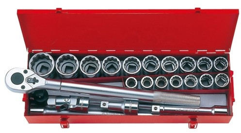 - Головки торцевые подробно: Дюймовые 3/4": 7/8", 15/16", 1", 1-1/16", 1-1/8", 1-3/16", 1-1/4", 1-5/16", 1-3/8", 1-7/16", 1-1/2", 1-9/16", 1-5/8", 1-3/4", 1-13/16", 1-7/8", 2"; удлинитель 3/4": 110, 200, 400 мм; вороток т-образный 3/4": 500 мм; трещотка 3/4": 24 зуба
