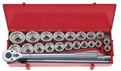 Набор торцевых головок, состоящий из 24 предметов.