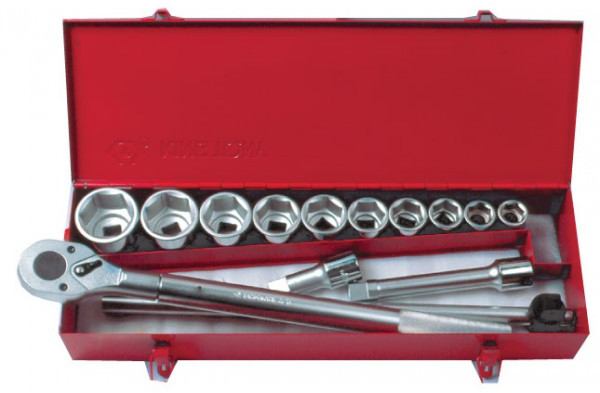 Набор торцевых головок с принадлежностями, состоящий из 14 предметов.