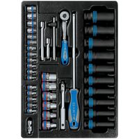 Набор с инструментом торговой марки KING TONY включает в себя торцевые головки и принадлежности, предназначен для монтажа и демонтажа крепёжных узлов...