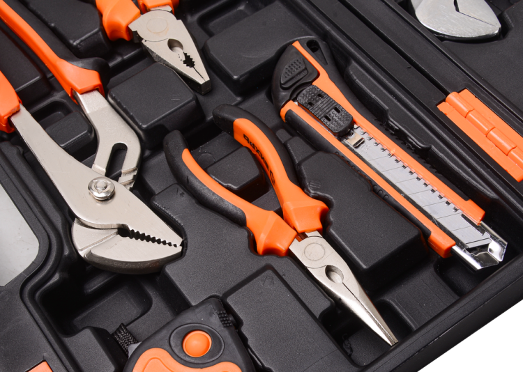 Набор инструментов пригодится дома, на даче, в гараже. Все предметы размещены в ударопрочном пластиковом кейсе.